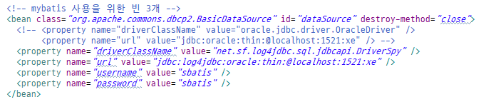 - 위에처럼 있는데 아래로 변경한다. 아디비번을 sbatis에서 spring으로 변경.