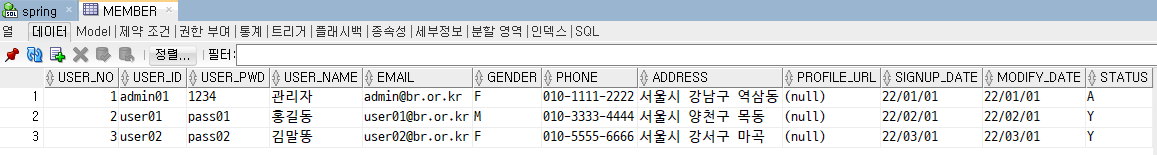 -------------- MEMBER 관련 ------------------