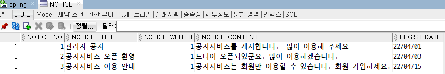 COMMENT ON COLUMN NOTICE.NOTICE_CONTENT IS '공지사항내용';