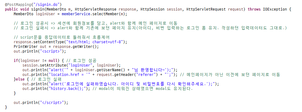 - 현재 컨트롤러의 로그인 성공 조건은 ~다. 조건을 하나 추가한다.