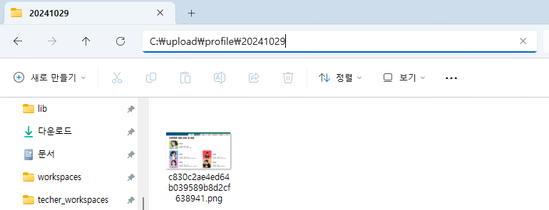 기존 파일은 사라지고 현재 프로필 이미지 파일 하나만 있다.