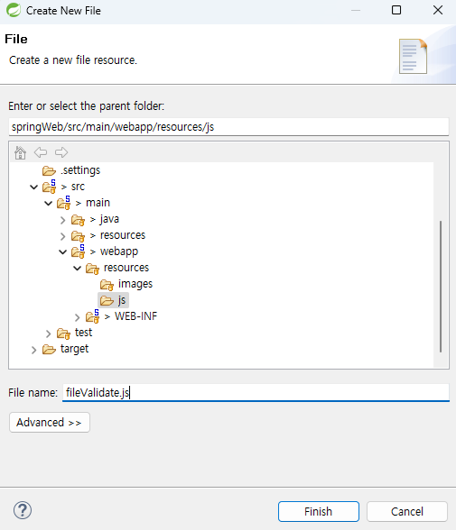 ㅁ src/main/webapp/resources에 js 폴더 생성