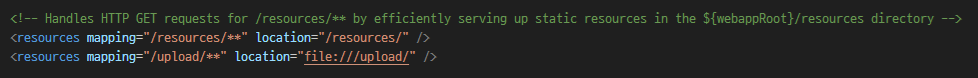 - spring legacy project에서 정적자원 디렉토리 관련해서 servlet-context.xml에 등록했었다.