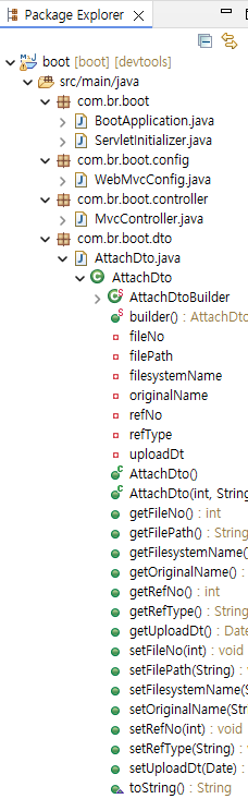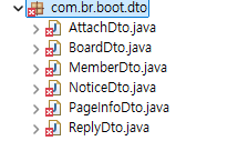 - package com.br.spring.dto;를 package com.br.boot.dto;로 바꾼다.