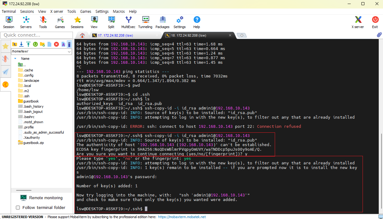○ ssh-copy-id -i id_rsa admin1@192.168.10.143