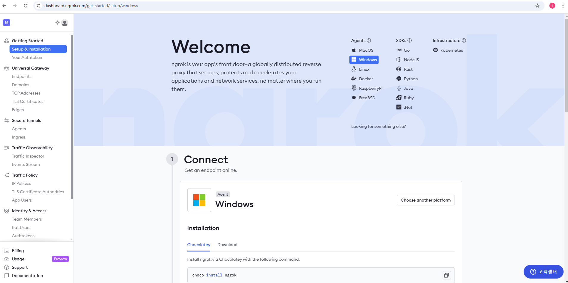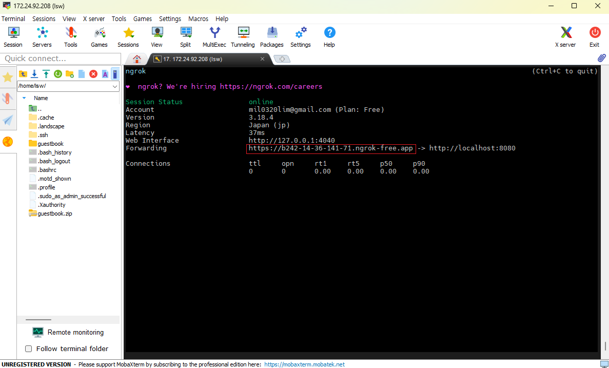 - 이 화면이 나온다. Forwarding의 빨간박스 부분을 브라우저 주소창에 치면 저기로 보내준다.