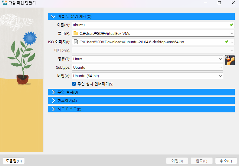 - 이거는 가상머신에 우분투를 설치하는 것이다.