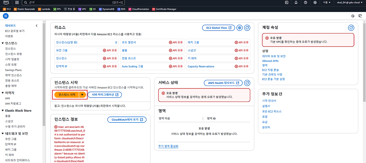 - aws에서 인스턴스 시작을 누른다.