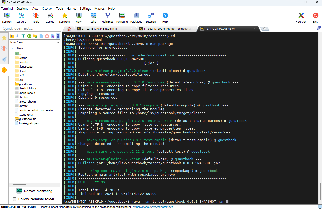 - /home/lsw/guestbook으로 돌아왔다.