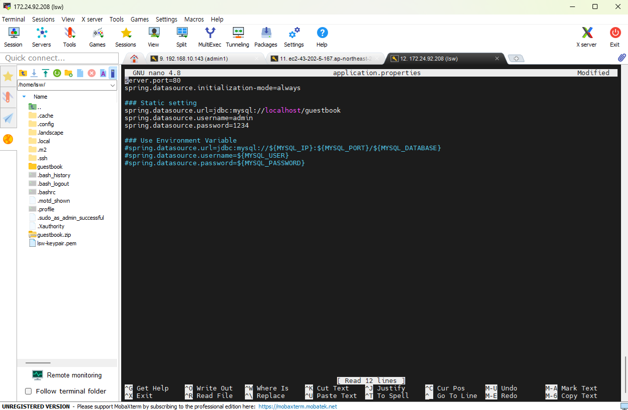 - nano 편집기를 사용하여 application.properties 파일을 열고 편집하는 명령어다.