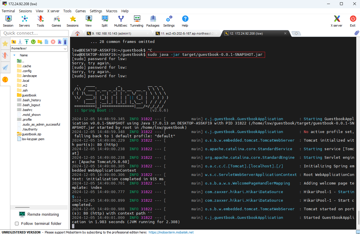 ○ sudo java -jar target/guestbook-0.0.1-SNAPSHOT.jar