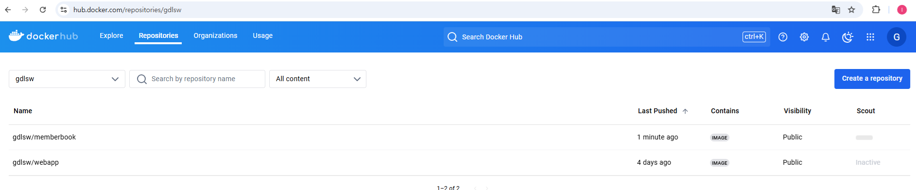 (3) docker push gdlsw/memberbook:2.0 도커허브에 이미지를 push함.