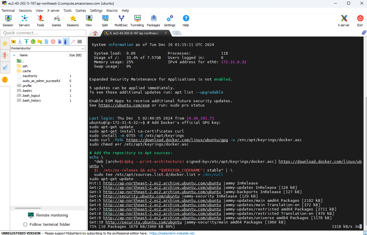 우분투는 똑같다. 서버의 위치만 다르다. 접속하는건 똑같다.