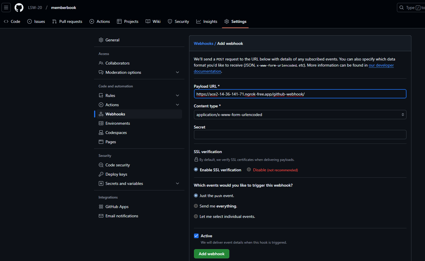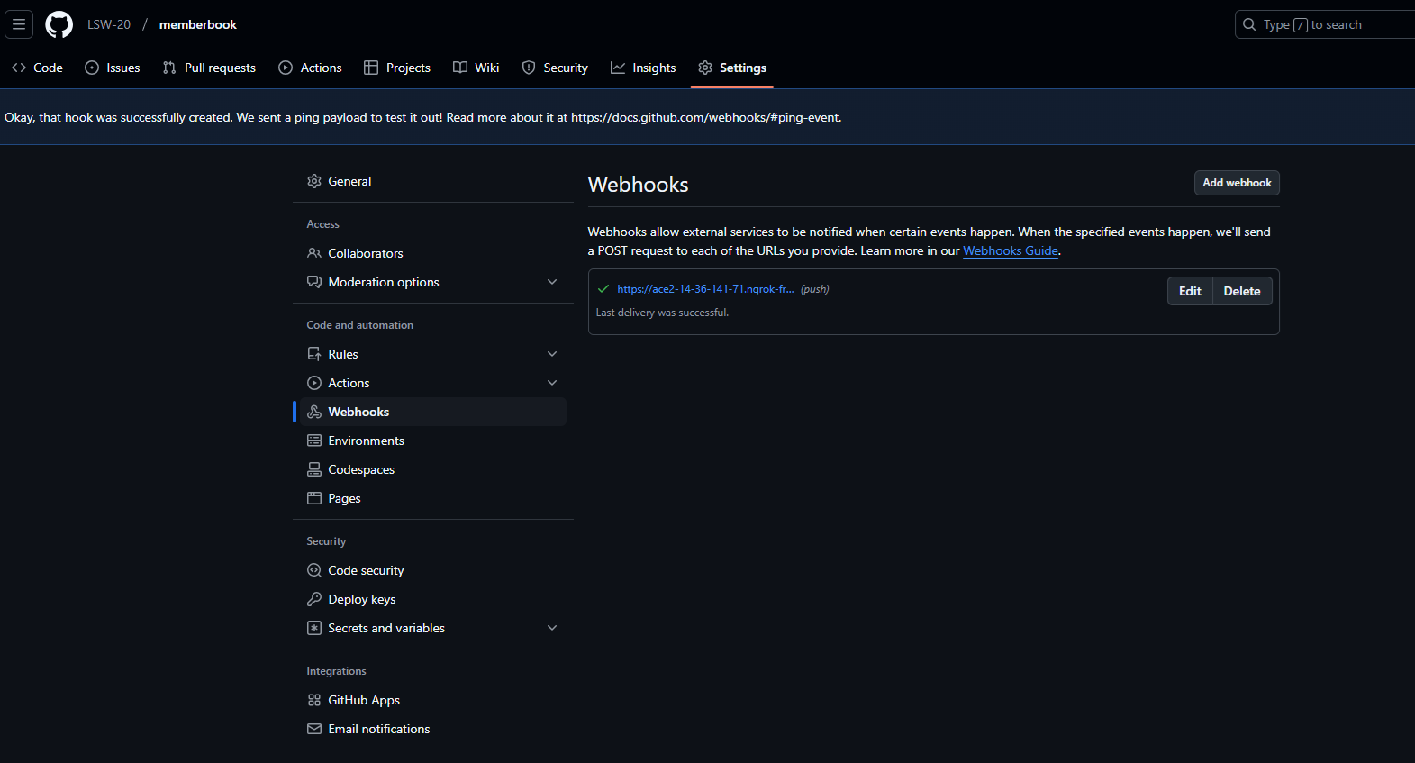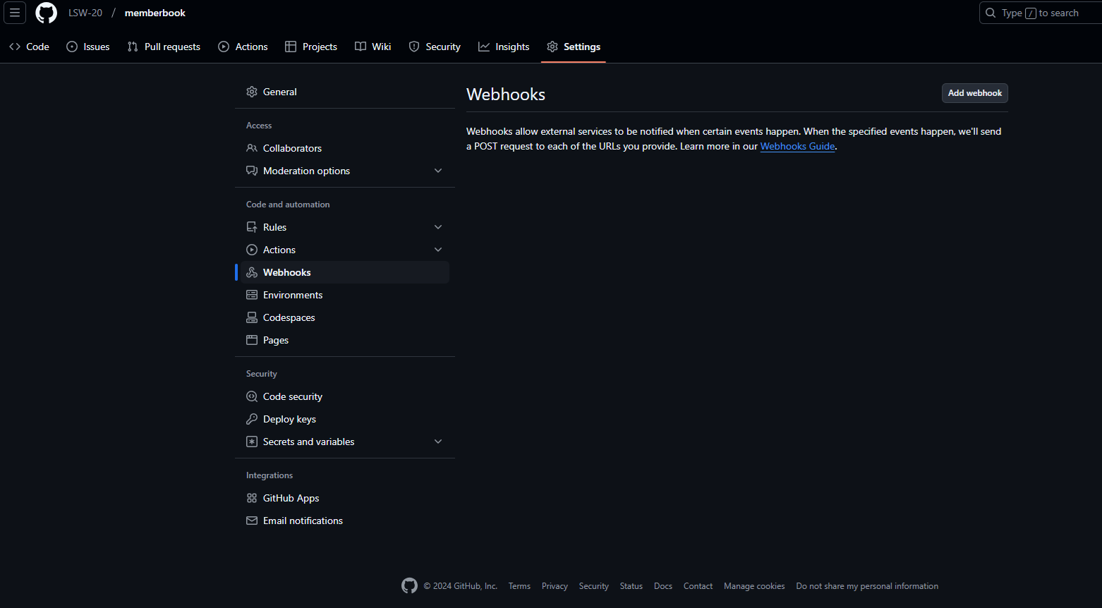 - settings - webhook