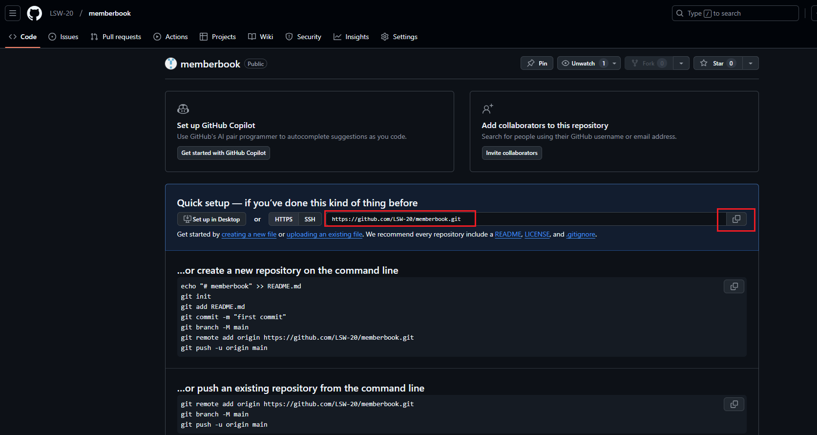 - memberbook 저장소에가서 주소를 카피한다.