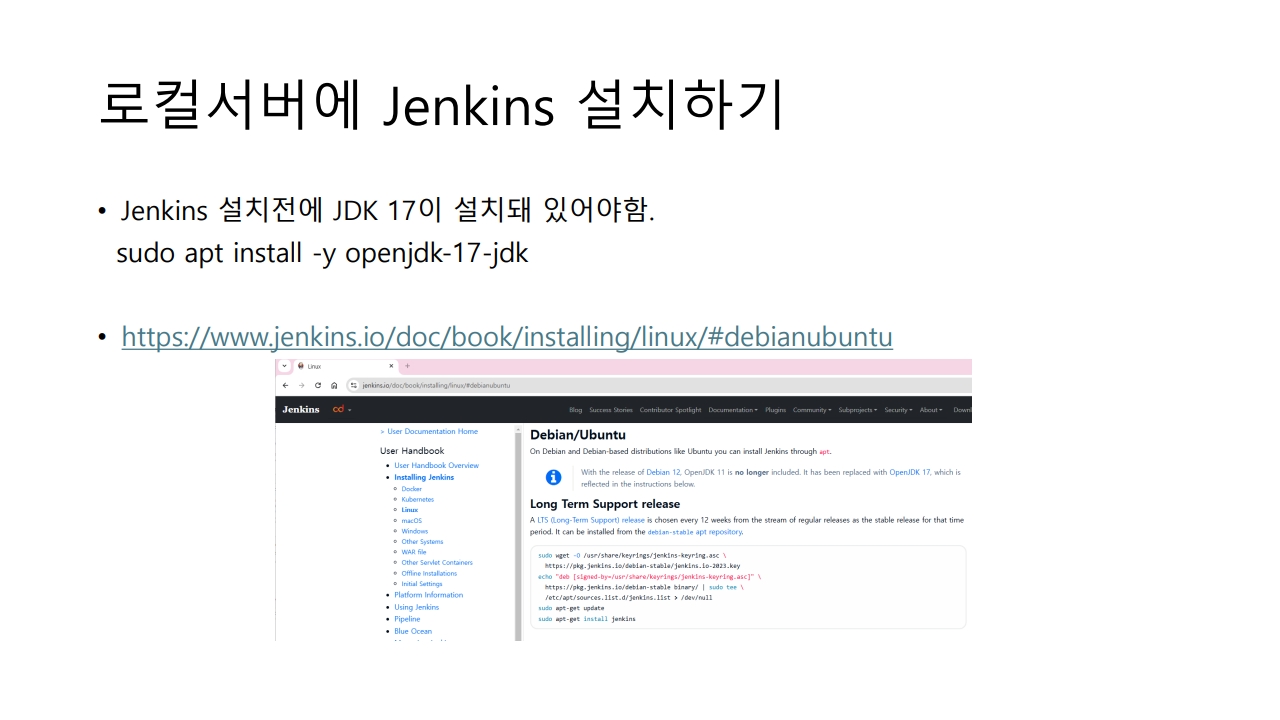 - 젠킨스도 자바로 된거다. WAR파일로 동작하거나 우분투에 설치해서 써도 된다.