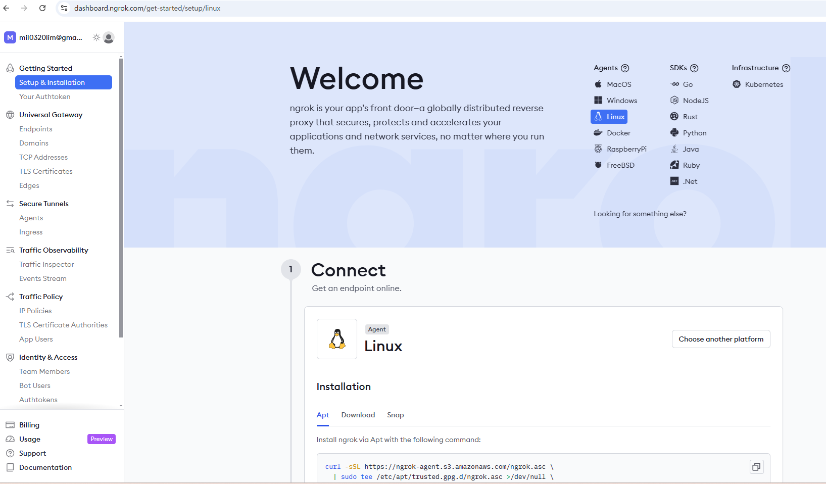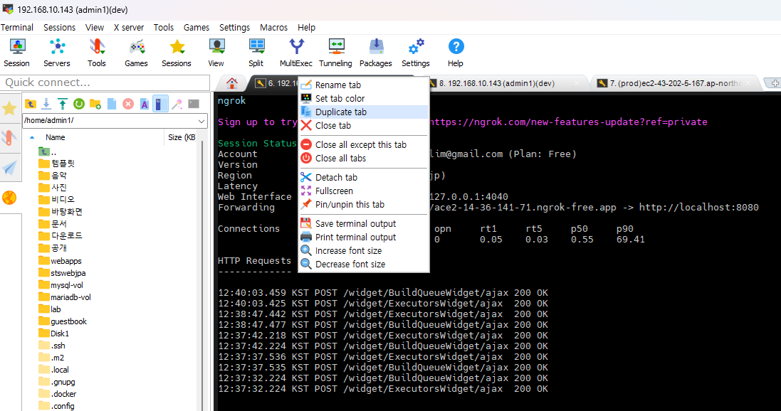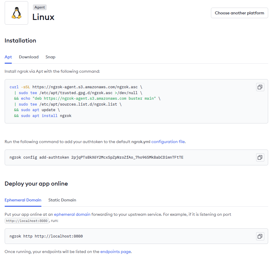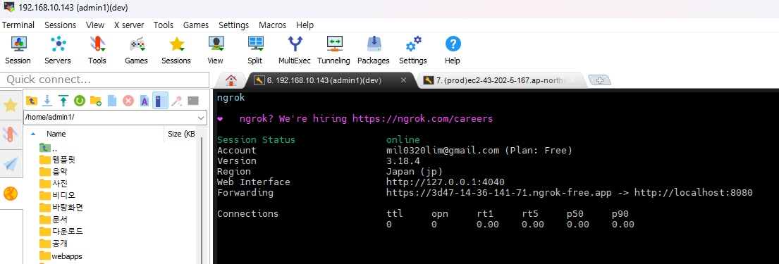 근데 버츄얼박스의 우분투는 바깥에서 접근이 안되죠. 그래서 NGROK을 쓴다.
