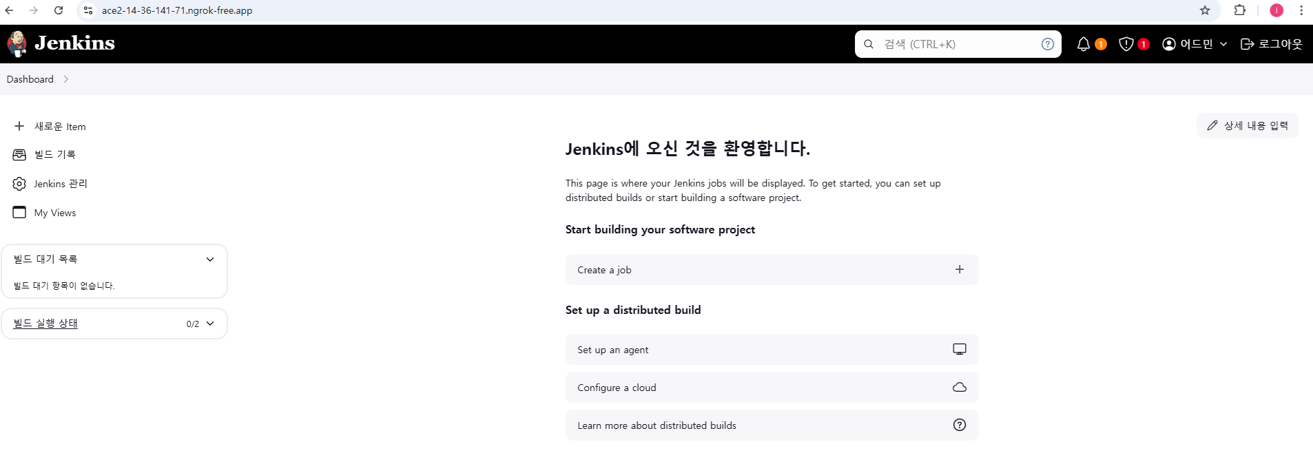 안그럼 젠킨스도 AWS의 EC2에 생성하면 돼요. 근데 그건 비용이 들어가니까. 로컬에서 유지하다가 로컬에 접속할 수 있게끔 엔지락 걸어두면 사용할 수 있다.