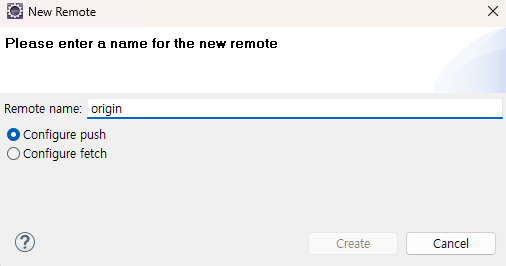 origin으로 되어있다. 이름은. 그리고 push로 create.