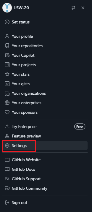 - 깃에서 오른쪽메뉴에서 세팅 을 누른다.