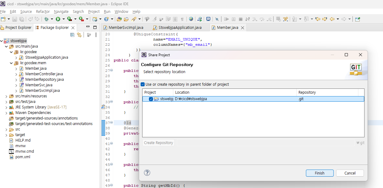 - stswebjpa 압축을 풀어서 d드라이브에 cicd 폴더를 두고 거기에 뒀다.