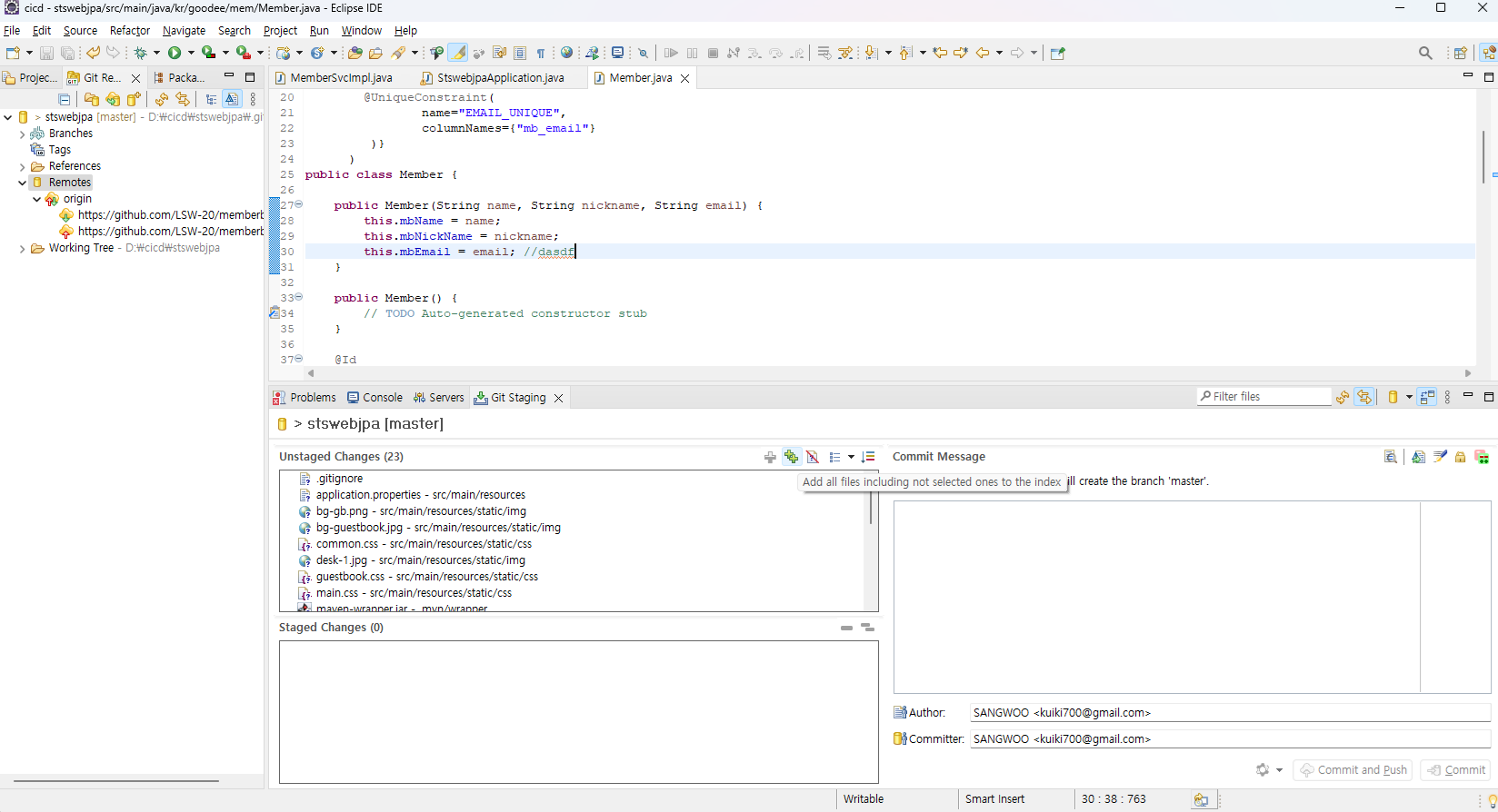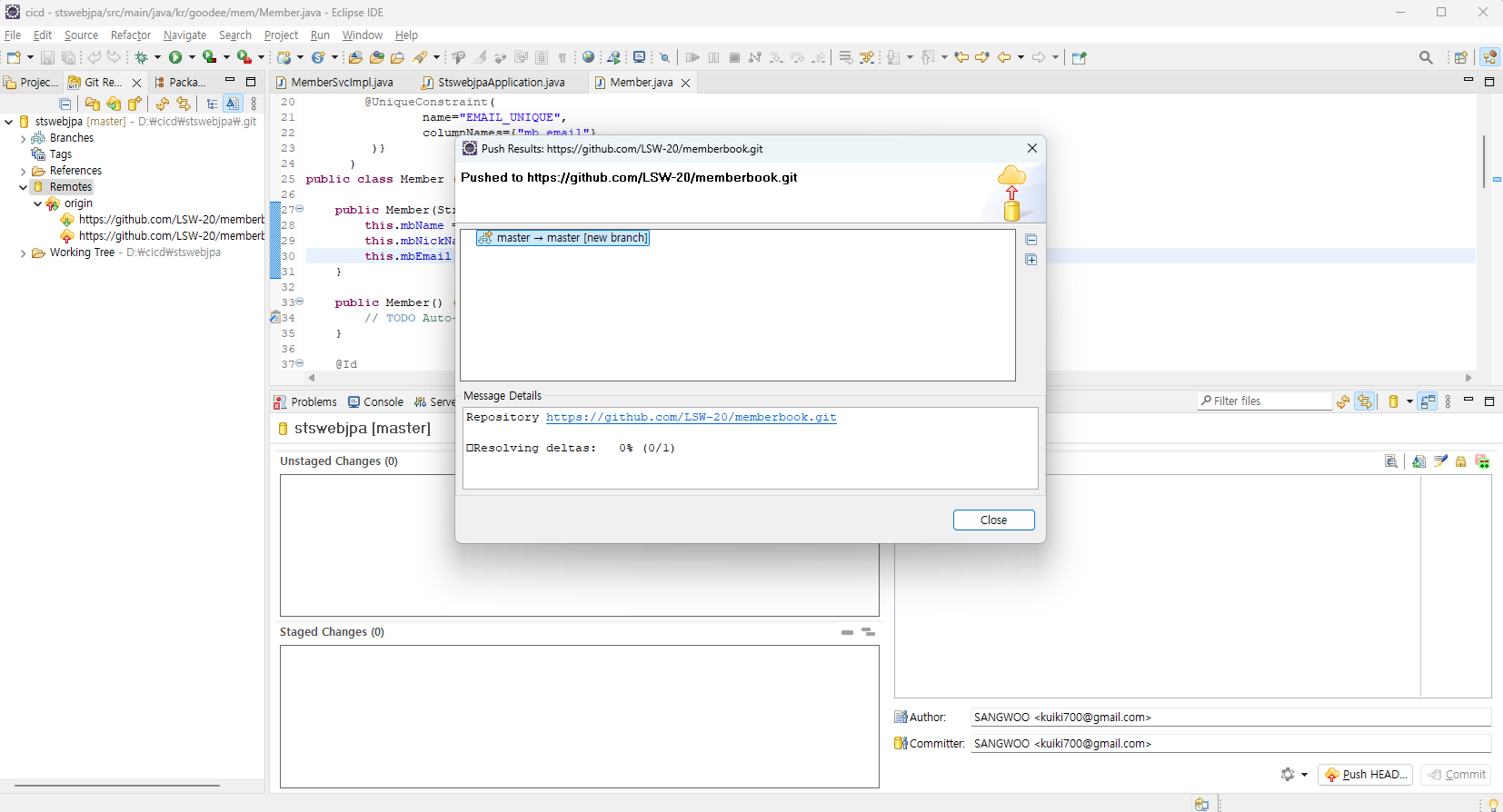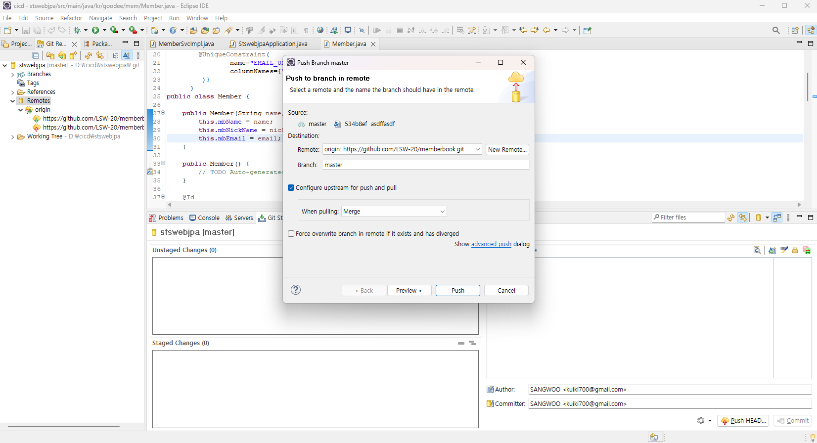 - 이러면 이클립스에서 커밋, 푸쉬하면 깃에올라간다.