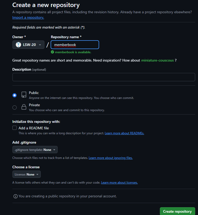 - 깃허브에 new repostiory로 memberbook을 만든다.