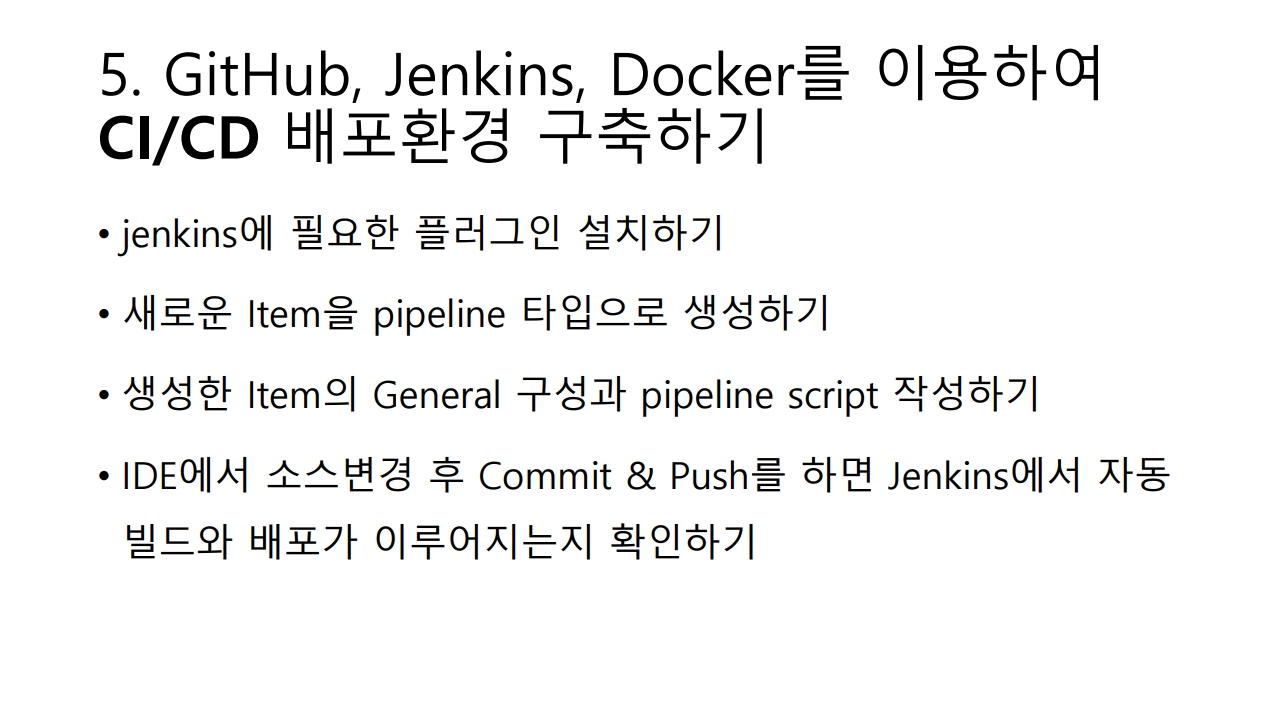 그럼 젠킨스는 깃허브에 깃풀을 해서 소스를 땡겨온다. 그리고 빌드하고, 2, 3, 4한다.