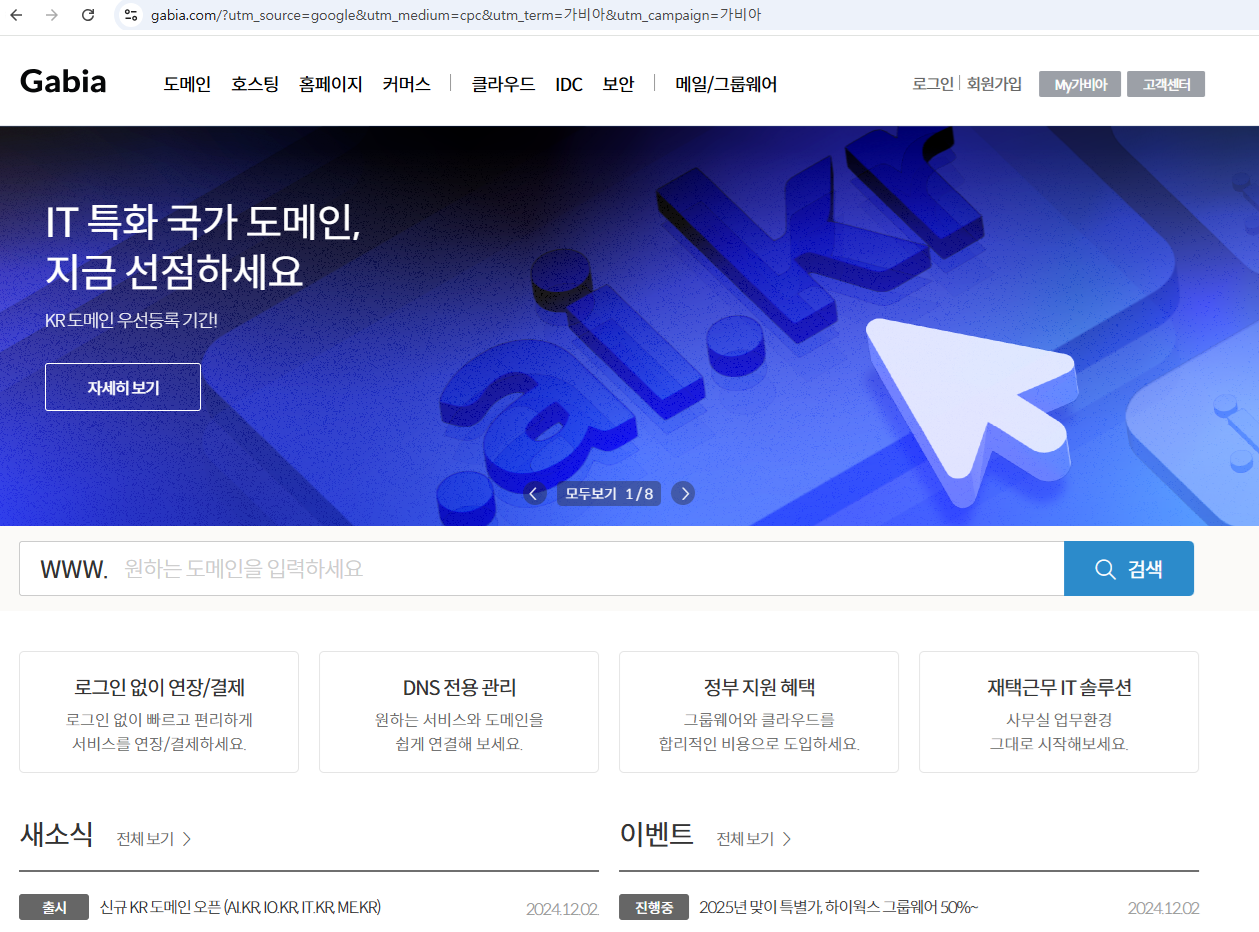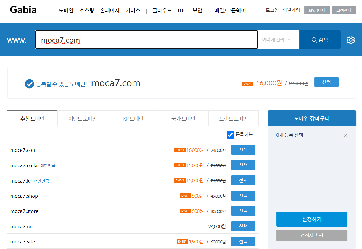 도메인을 가서 내가 원하는 도메인을 검색하면 나오는데 왠만하면 다 등록이 되어 있다.