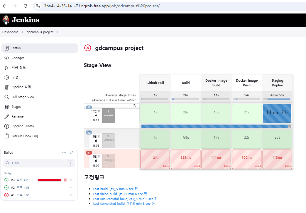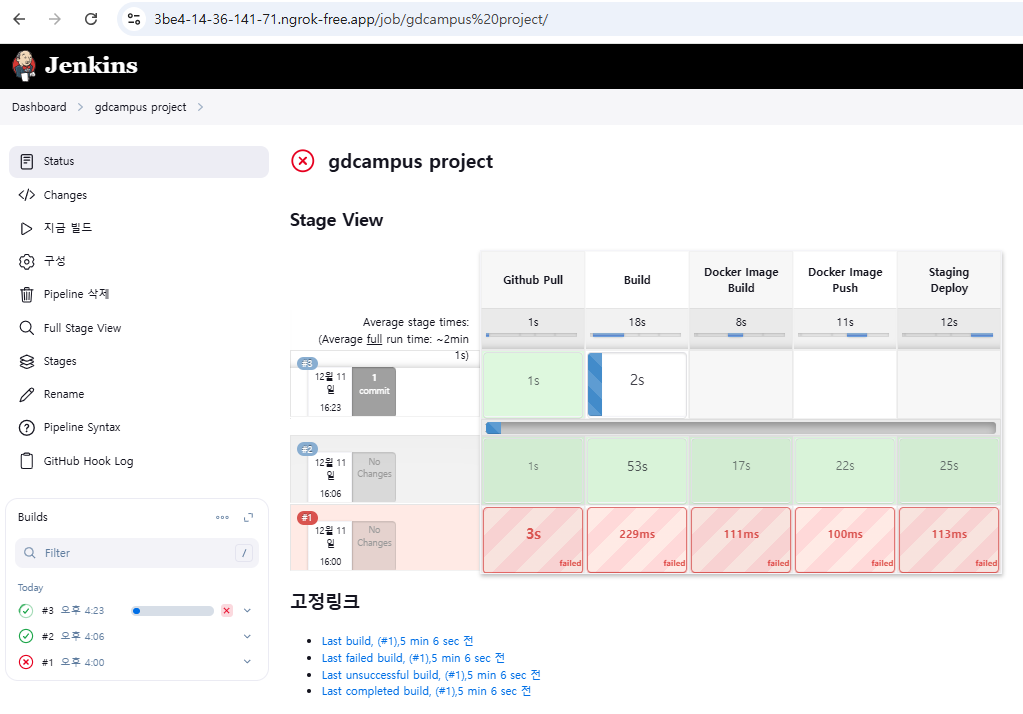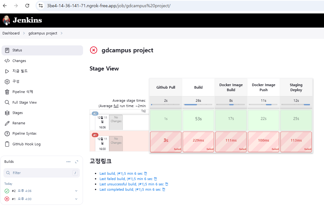 - 근데 또 젠킨스에서 마지막 단계에서 안넘어간다.