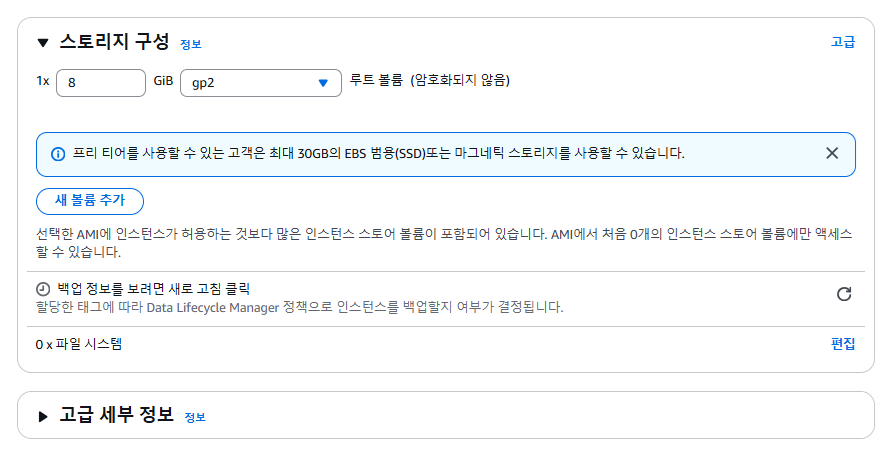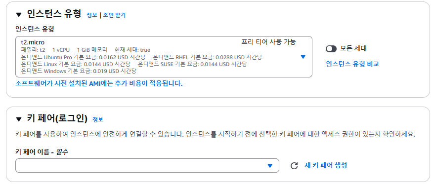- 인스턴스 유형은 기본으로 선택되어 있는 t2.micro를 한다.