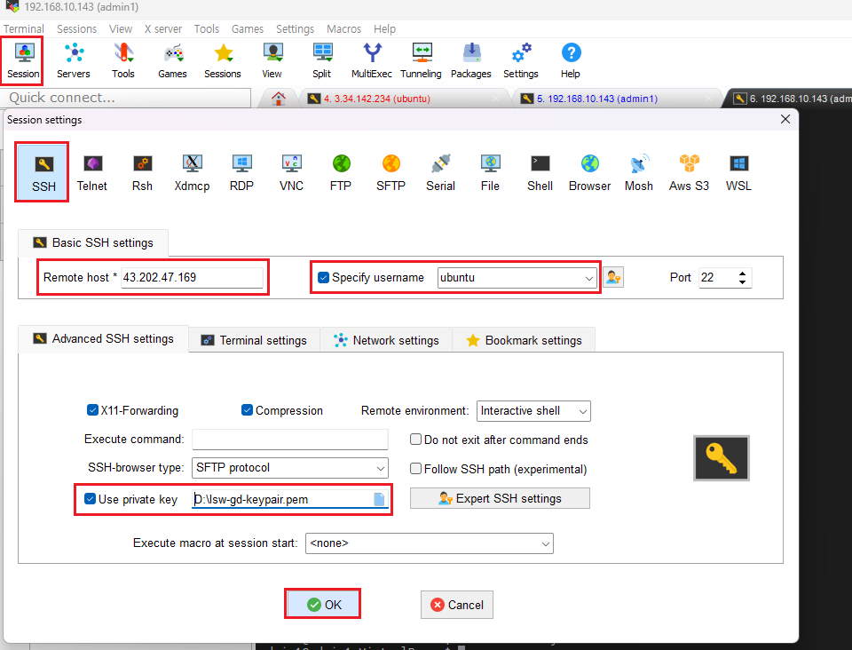 - aws의 ec2에 또 연결이 안된다. 다른사람건 된다.