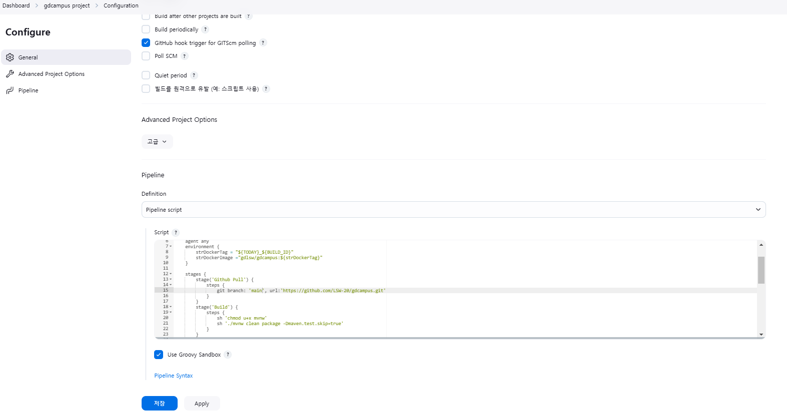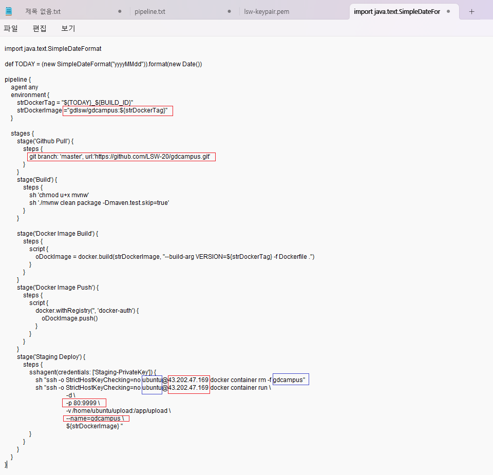 - 파이프라인 스크립트 master에서 main으로 수정했다. 또 깃허브 주소 우리걸로 바꿨다.