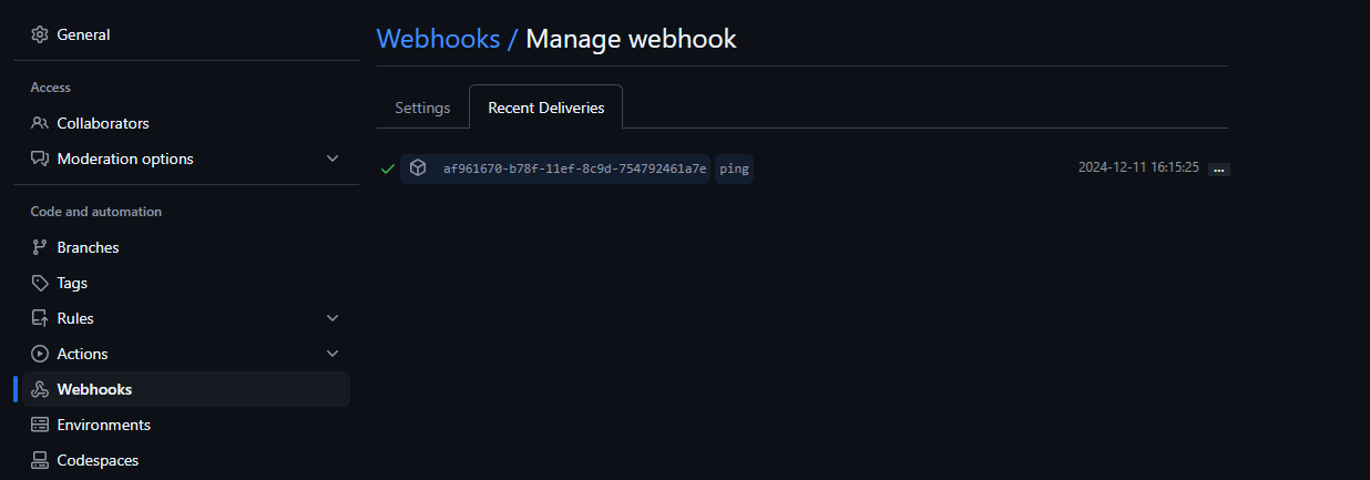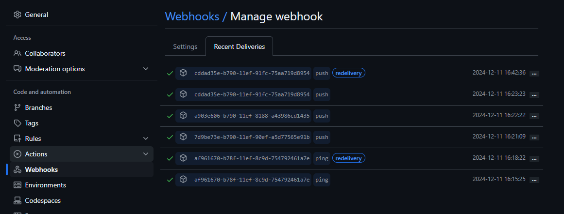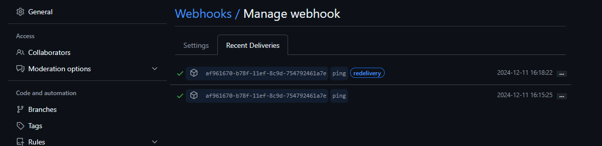 - 다른사람건 되니까 깃허브에서 웹훅을 바꿔본다.