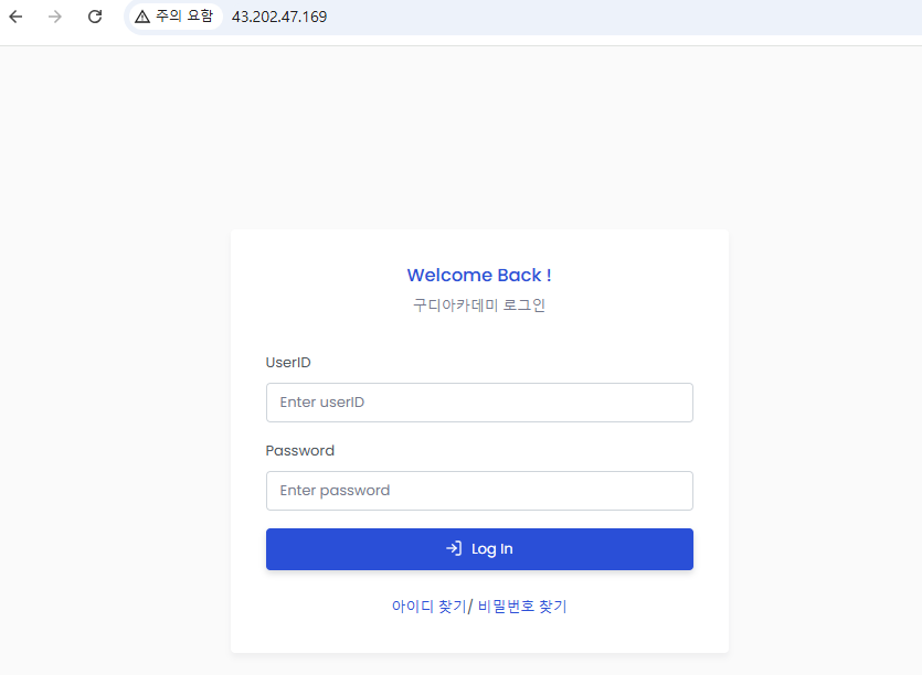 - 새로만든 ec2 공인 ipv4주소로 로그인해본다.