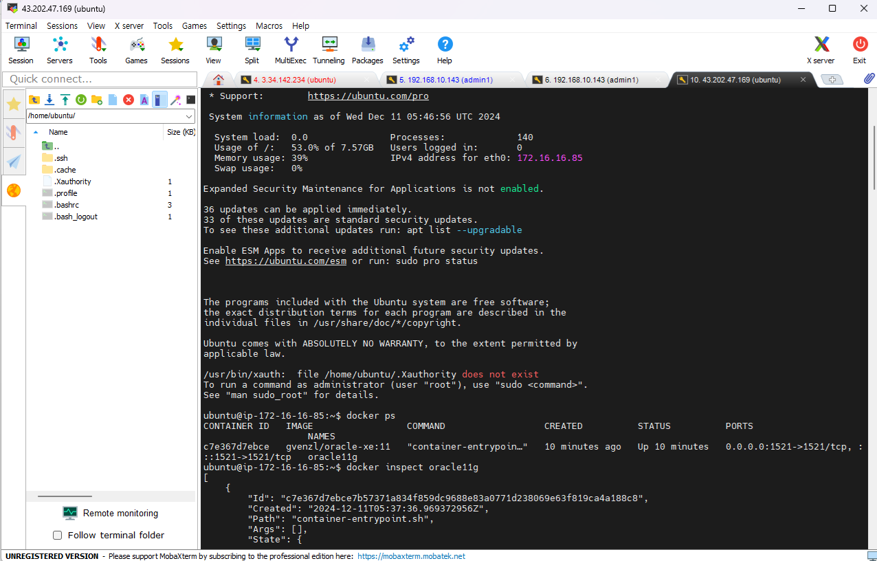 - 이러면 이제 정상적으로 되었다면 도커 설치하고 오라클 컨테이너까지 생성이되어있어야 한다.