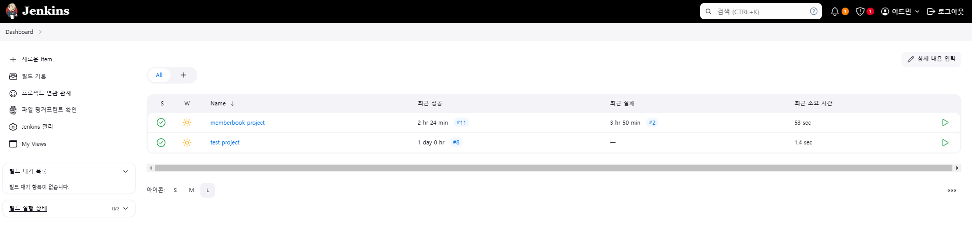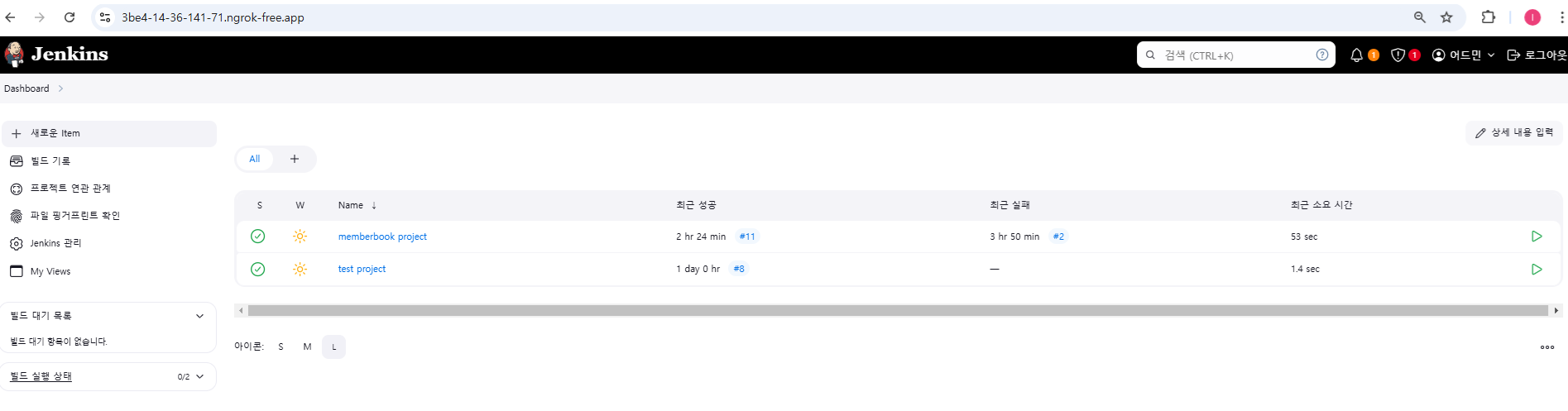 - 다른사람 젠킨스 경로로 url에 들어가서 admin, 1234로 로그인하면 커밋중인게 보인다.