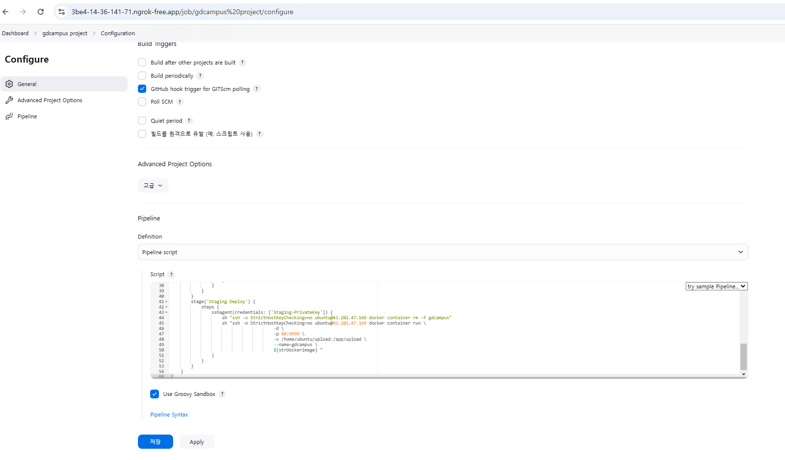 - 젠킨스에서 staging deploy는 운영 전 최종 테스트를 위해 스테이징 서버에 코드를 배포하는 단계입니다.