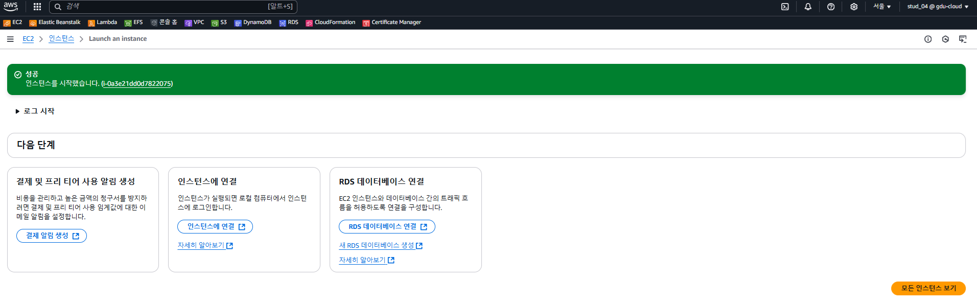 - 인스턴스 시작을 눌렀따.