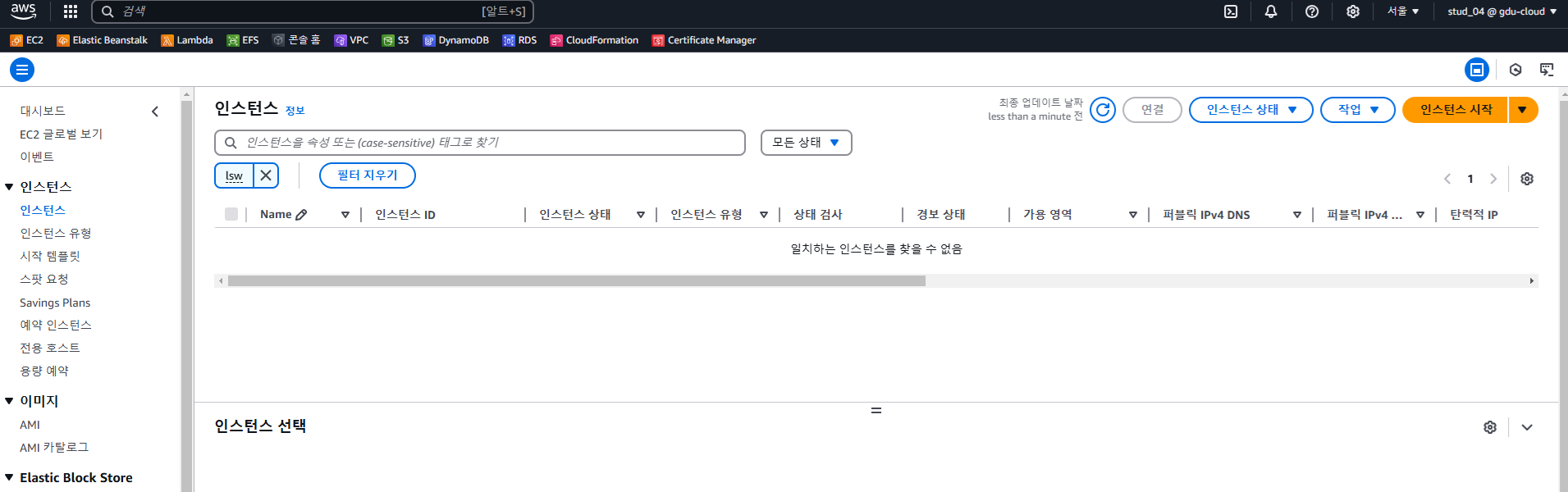 - 새로 만들어서 해본다. 인스턴스 시작을 누른다.