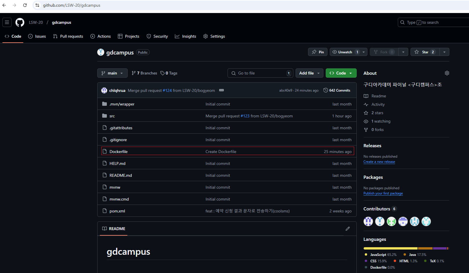 - sts에서 메인페이지의 문구를 바꾸고 gdcampus 저장소 main에 커밋&푸쉬했다.