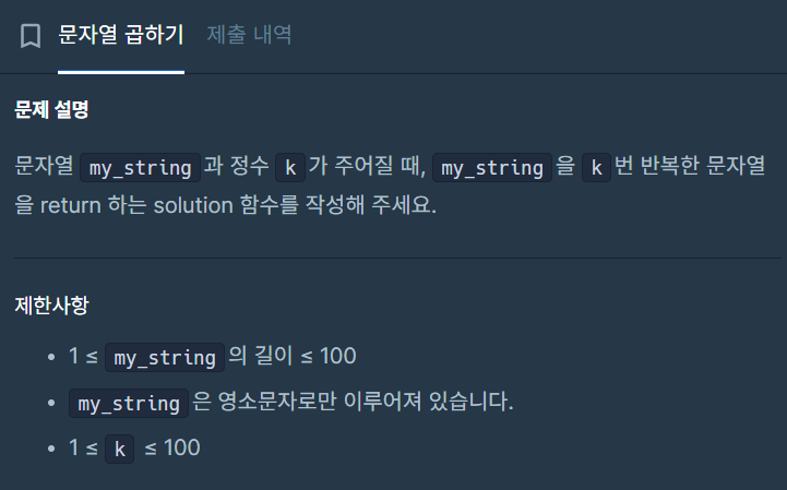 - String.repeat() 메소드는 String 메서드 중 하나로 String 문자열을 파라미터의 주어진 횟수만큼 반복한다.