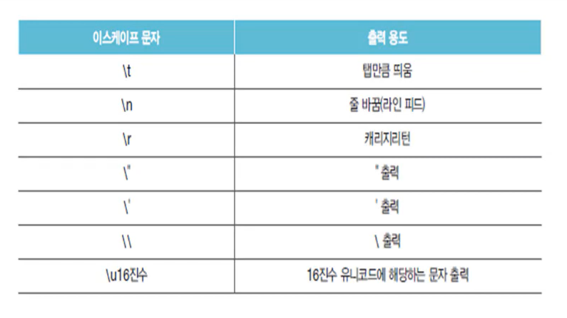 - 이스케이프 문자를 사용하면 특정 문자를 포함시키거나, 문자열의 출력을 제어할 수 있음.
